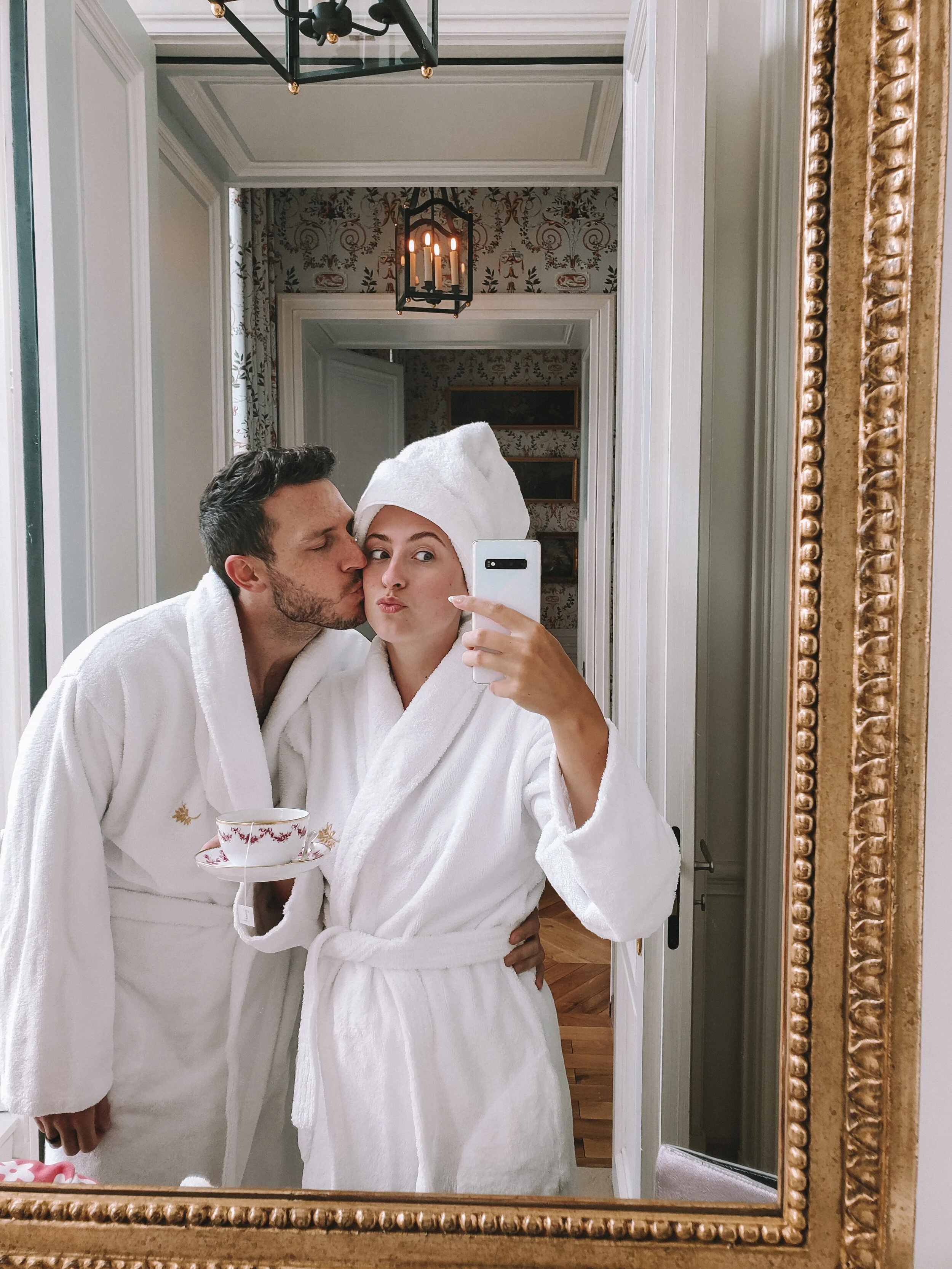 After our tour of the building where we got to see the lounge area, spa, restaurant, etc., we were taken to our room, the Madame De Fouquet suite. I had originally booked a “normal” room but their team graciously upgraded us to the most insane room I have ever stayed in before!